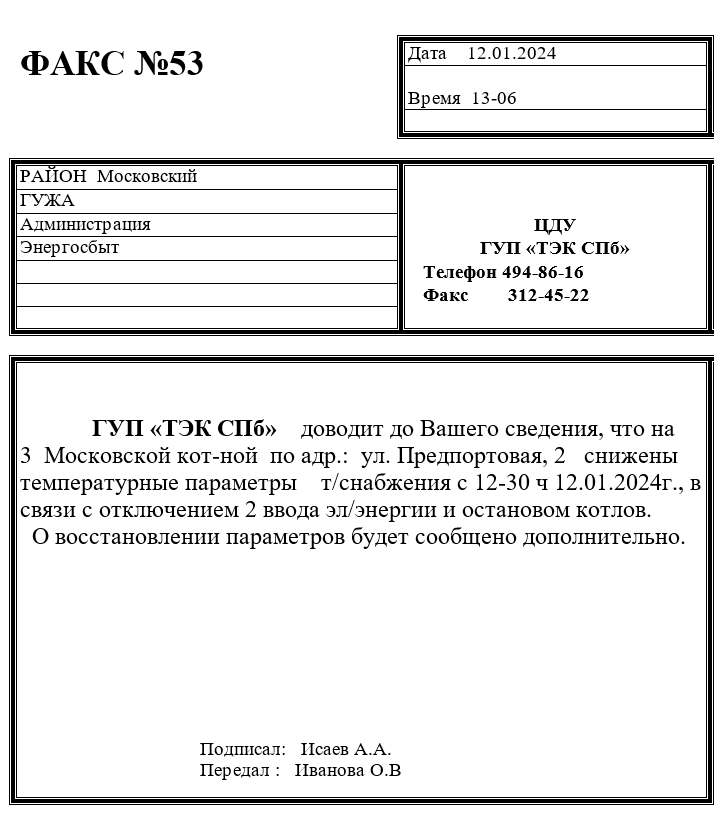 ЦДС ГУП "ТЭК СПБ" уведомляет Вас!