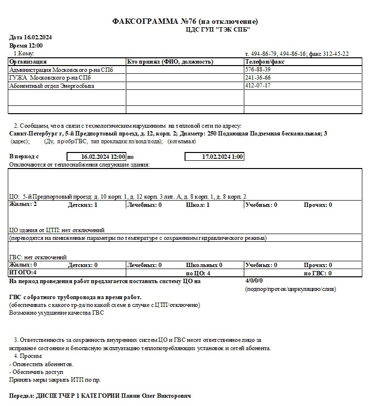 В период с 16.02.2024 12:00 по 17.02.2024 1:00 отключаются от теплоснабжения следующие здания: 5-й Предпортовый проезд: д. 10 корп. 1, д. 12 корп. 3 лит. А, д. 8 корп. 1, д. 8 корп. 2