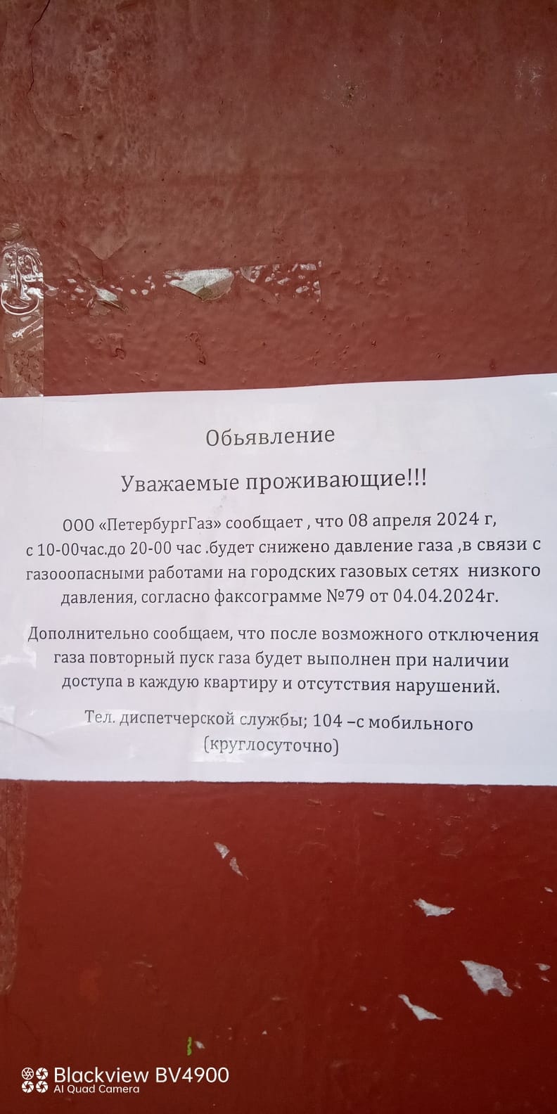 Снижение давления газа 08.04.2024 г. с 10:00 по 20:00 в связи с газоопасными работами ООО "ПетербургГаз" на городских газовых сетях низкого давления