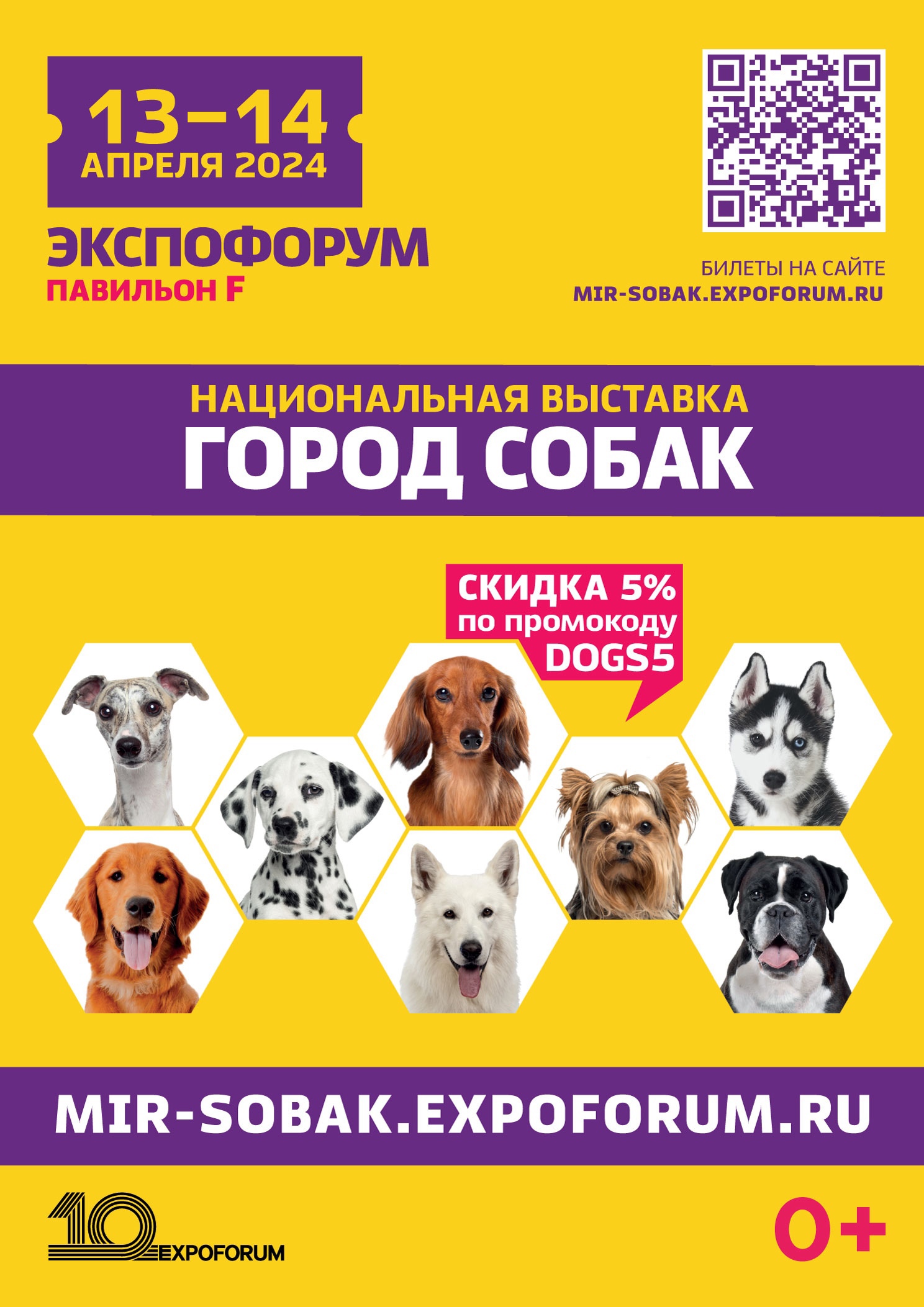 C 13.04.2024 г. по 14.04.2024г. в КВЦ "Экспофорум" (Петербургское шоссе, д. 64, к. 1, Лит. А) пройдёт выставка "Город собак".