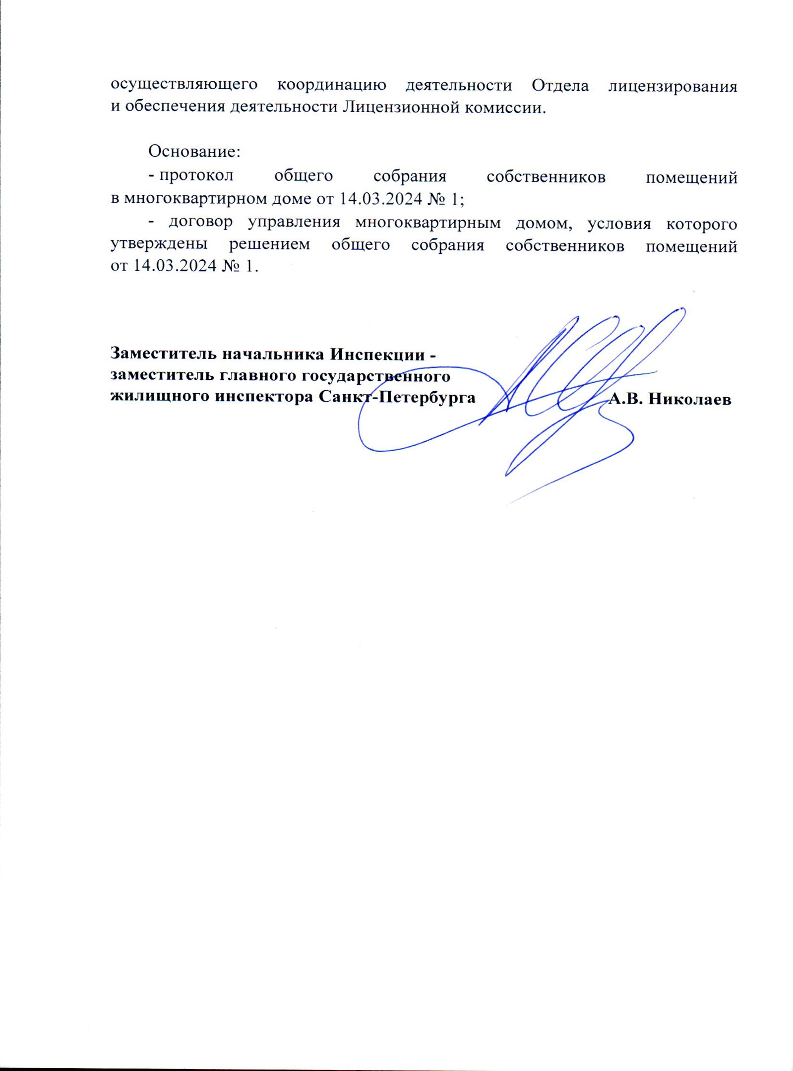 Распоряжение Государственной жилищной инспекции Санкт-Петербурга