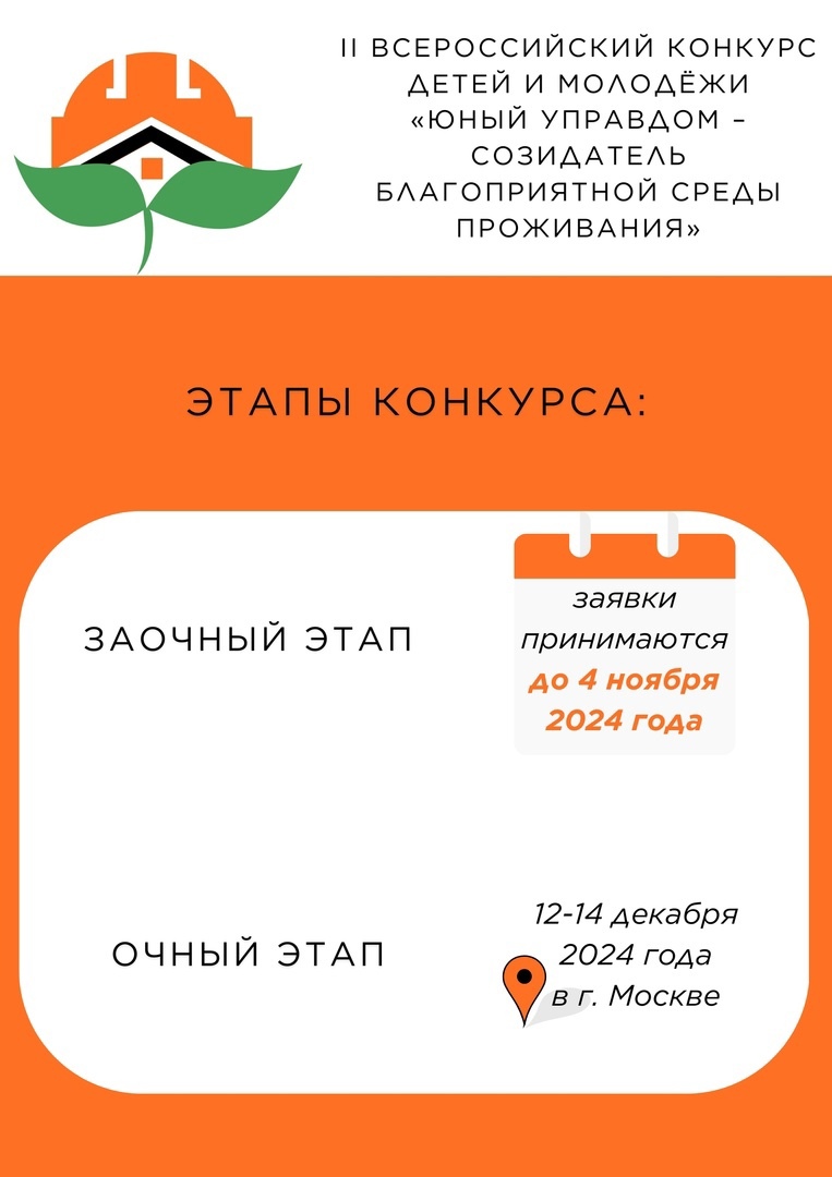 Регистрация на заочный этап конкурса открыта до 4 ноября 2024 года. Чтобы подать заявку на участие, переходите на сайт конкурса: https://konkurs-upravdom.ru/.