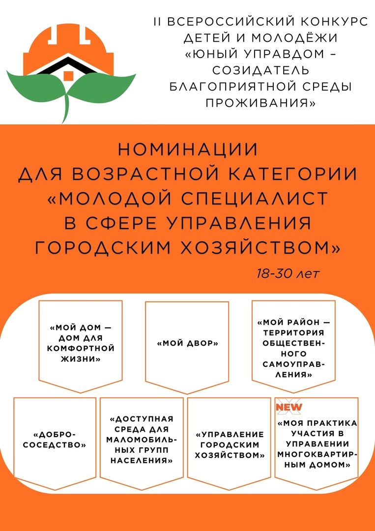 В этом году на конкурс могут подать заявку участники от 10 до 30 лет. Мы изменили список номинаций в возрастных категориях «Домовёнок» и «Юный управдом» и добавили практико-ориентированную номинацию «Моя практика участия в управлении многоквартирным домом» для участников в возрастной категории «Молодой специалист в сфере управления городским хозяйством».
