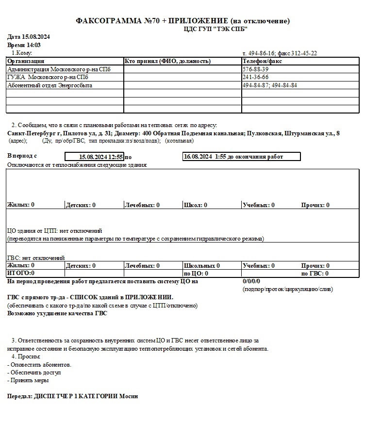 ЦДС ГУП "ТЭК СПБ" уведомляет, в связи с плановыми работами на тепловых сетях по адресу: улица Пилотов, д. 31