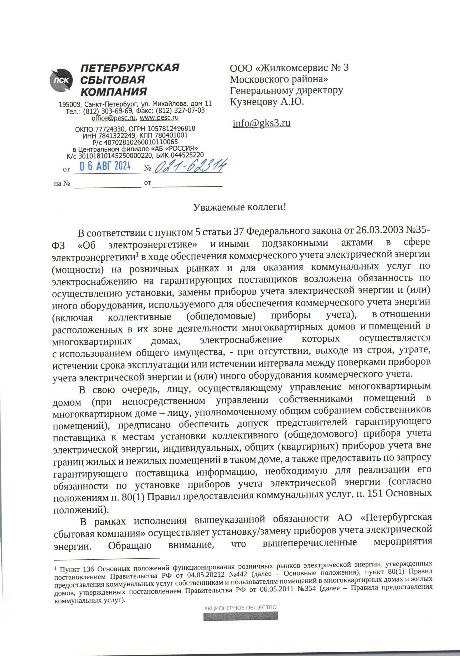 АО «Петербургская сбытовая компания» с 19.08.2024 по 21.08.2024 проводит работы по замене узлов учёта в многоквартирных домах по адресам: