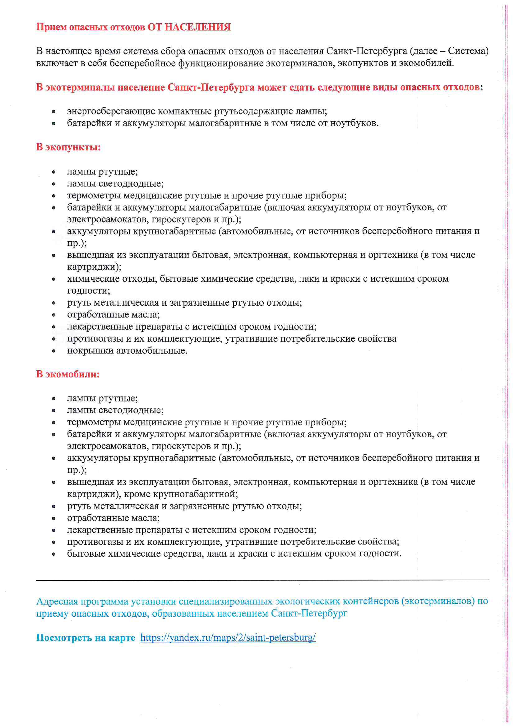 Памятка населению по обращению с "Опасными отходами"